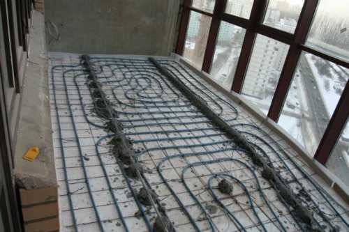 - Смонтировать систему тёплого пола. Для эффективной работы кабель должен покрывать не менее 70% площади балкона. Не забывайте, что устанавливать радиаторы на балконе нельзя, поэтому рекомендуется заранее позаботиться о системе дополнительного подогрева. Особенно это актуально, если вы планируете использовать балкон или лоджию как дополнительное жилое помещение.