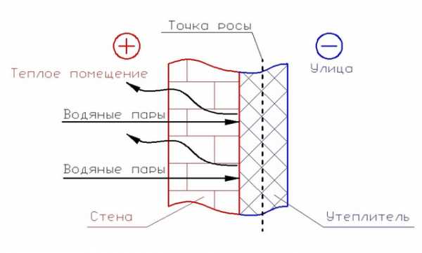 Рекомендуется при внутренних работах по теплоизоляции использовать утеплитель с водонепроницаемыми свойствами, и по возможности свести к минимуму расстояние между стеной и изоляцией. Этого можно достичь с помощью распыляемого пенополиуретана.