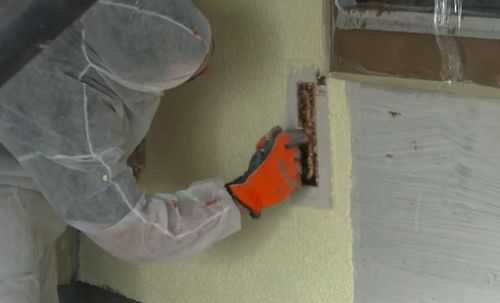 - Углы и откосы в дверных и оконных проёмах. При монтаже плит нельзя допускать, чтобы стыки находились точно в углах проёмов. Если так сделать, то со временем возникающее напряжение приведёт к трещинам в штукатурке. Дверные и оконные проёмы укрепляются теми же способами, что и углы стен, — специальными профилями и армирующей сеткой.