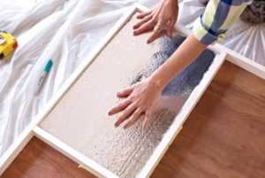- С двери нужно снять покрасочный материал, лак. После чего очень тщательно осмотреть дверь на наличие трещин. Если такие имеются, при помощи шпаклевки заделываются все появившиеся дефекты.