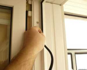 Процесс монтажа уплотнительной резинки на балконную дверь