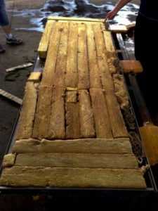 - На полотно укладывается поролон. Его следует зафиксировать. Для этого может подойти двухсторонний скотч.