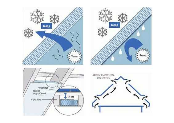Помимо этого необходимо учитывать, что зимой, при подогреве крыши теплым воздухом чердачного помещения, слой снега тает, а оттаявшая вода застывает, превращаясь в лед, который в свою очередь может уничтожить любое кровельное покрытие. Поэтому подогрев кровли необходимо ограничить. В ином случае восстановления поверхности крыши избежать не удастся.