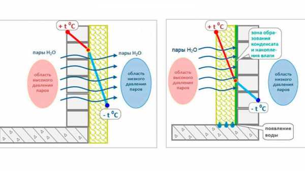 Проходит определенное время, длительность которого определяется погодными условиями и влажностью, температурой внутри комнаты, утеплитель и ограждающий материал напитываются влагой, промокают. Утеплитель теряет свои теплоизоляционные свойства.