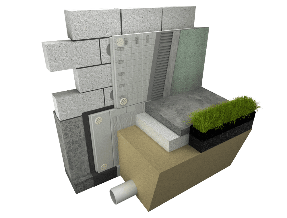 Изоляция на внешней стороне подземных частей стены временно удерживается на месте с помощью клея до тех пор, пока не будет уложена засыпка. Та часть жесткой доски, которая выступает над землей, должна быть механически закреплена и защищена.