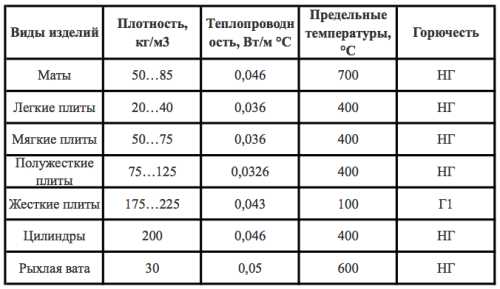 Все теплоизоляционные материалы имеют свою плотность, теплопроводимость и степень горючести.