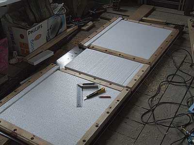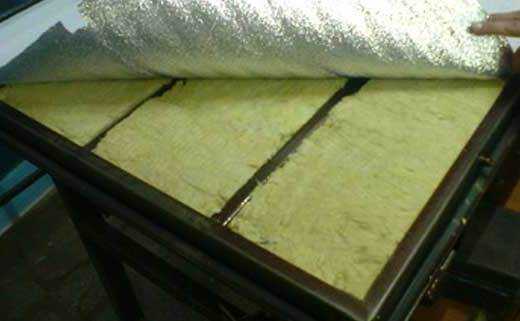 Полотно необходимо разобрать; затем к листу клеят утеплитель – минеральную вату, поролон или другой. Лучше всего для крепежа утеплителя использовать жидкие гвозди. После этого конструкцию снова собирают.