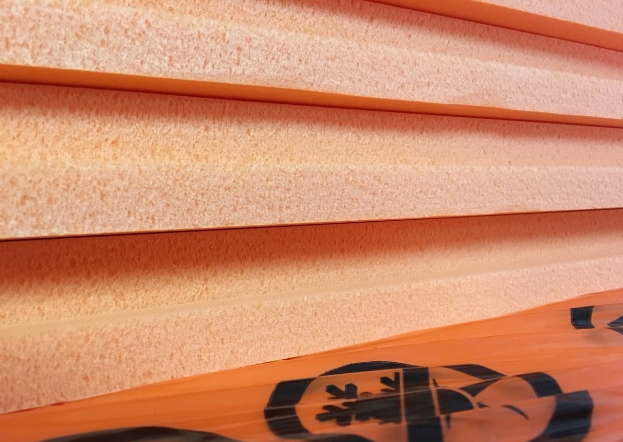 ЭППС — самый популярный сегодня утеплитель фасадов. Он легко монтируется, мало весит, относительно недорогой и обладает хорошими эксплуатационными характеристиками. Производят экструдированный пенополистирол из обычного полистирола, который в процессе изготовления сначала нагревают до высокой температуры, а затем с помощью углекислого газа вспенивают в специальном приспособлении — экструдере. После вспенивания готовый состав формуют в виде листов, имеющих немалую механическую прочность и хорошую теплоизоляционную способность (за счет полых ячеек, образующихся при вспенивании, этот показатель достигает 95%). К тому же материал водонепроницаемый, не поражается плесенью, пожаробезопасен, не гниет и не реагирует на перепады температур.