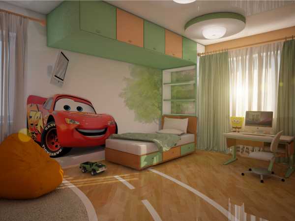 Среди нарядных помещений для сынишек, легко заметить, что любимыми цветами дизайнеров являются: синий, голубой, салатовый, бежевый, оранжевый, желтый.