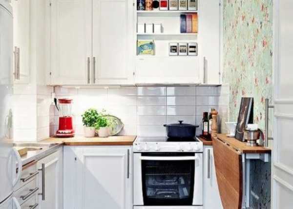 Если кухня маленькая, то обеденную зону имеет смысл вынести в соседнее помещение, но если и этого сделать не удается, то на помощь придут компактные барные стойки и откидные столики.