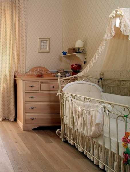 Кровать необходимо поставить как можно дальше от входа в комнату, потому что возле него прослеживается высокий фон звука, и малыш может внезапно просыпаться. Рядом с оконным проёмом намного уютнее и спокойнее. Если представить себя вместо спящего крохи, то станет понятным, что лучше спать за ширмой, нишей.