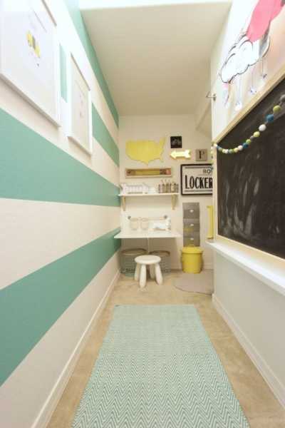 - Зонирование. Узкую комнату ребенка можно разделить на 2 квадратные зоны. Например, сделать зону для отдыха и зону для занятий или для игр; а если комната для двоих детей, отделить часть для одного ребенка и часть для другого. Перегородить две зоны можно с помощью гипсокартонной перегородки, шкафом или стеллажом, только не делайте глухую перегородку.