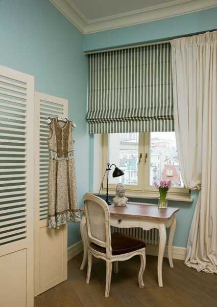 - Повесьте прозрачные занавесы до края окна или легкие жалюзи вместо тяжелых портьер. Прекрасно будут смотреться и римские шторы.
