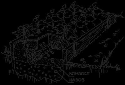 Такой полив не уплотняет почву и способствует быстрому разрыхлению ложа грядки и распределению перегноя вглубь и вширь, что увеличивает плодородие траншеи.