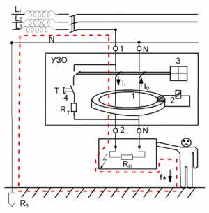 контролирует наличие тока утечки (называемого также разностным или дифференциальным). Последний чаще всего появляется из-за нарушения изоляции фазового провода. В результате под напряжением оказываются внешние, нетоковедущие части электроприбора – это называется утечкой тока на корпус. Прикоснувшись к ним либо по неосмотрительности взяв в руки оголенный фазовый провод, человек подвергает свою жизнь и здоровье большой опасности. И здесь на выручку приходит УЗО, которое мгновенно обесточивает подконтрольный участок сети.