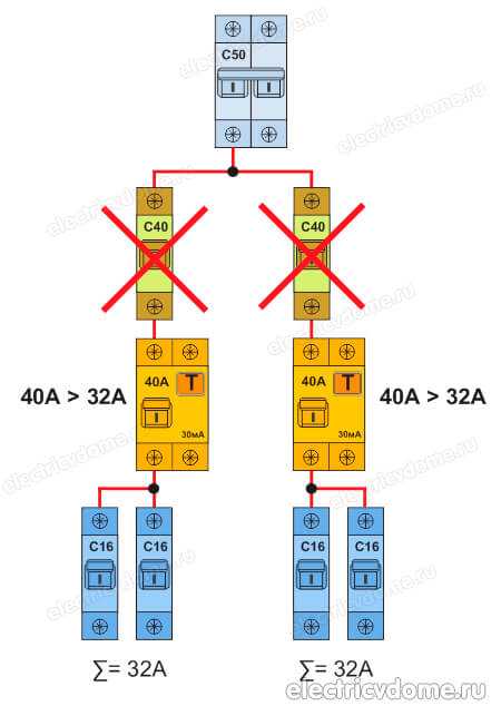 Первое, что приходит на ум это использование защитного устройства такого номинала в качестве вводного (противопожарного). Но опять же таки вводное УЗО должно быть «селективного» исполнения помеченное буковкой «S», а ток утечки для него должен быть как минимум 100 мА и выше.