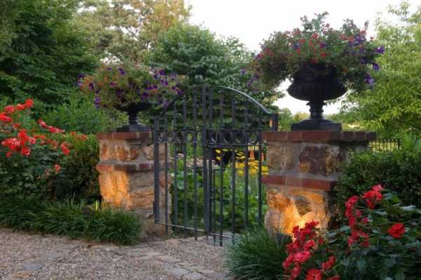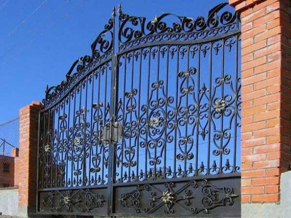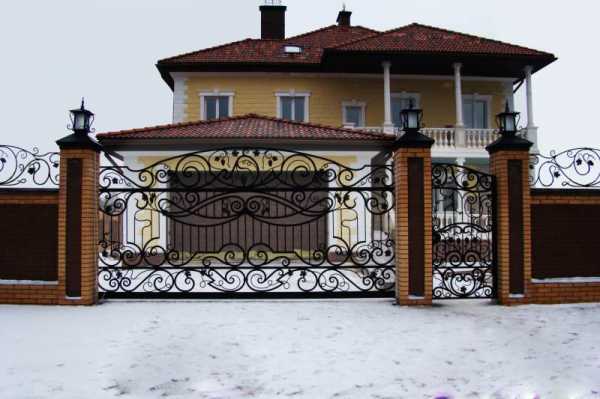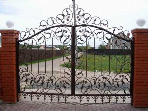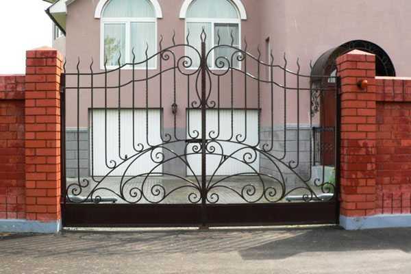 Ворота на кирпичных столбах — кованое украшение вашего дома