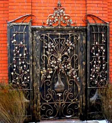 Элементы художественной ковки: завитки, виноградные грозди, цветы, фамильные гербы, логотипы — могут придать этой визитке индивидуальность, никем не воспроизведенную и неповторимую. Каждый мастер ковки — это художник, изделия которого воспроизводят только ему присущую манеру исполнения и расположения деталей. Поэтому изготовленное по заказу изделие всегда эксклюзивно. - Всего лишь несколько небольших кованых элементов в оформлении, к примеру, металлической калитки, может придать нотку изысканности всему внешнему облику территории. Они уместны как в частном доме, дворе, так и в оформлении офисных территорий, гостинично-ресторанных комплексов. Художественные элементы на воротах и калитке создают целый гармоничный ансамбль с выполненными в той же технике садовыми скамейками, балконами, оградами для цветников, фонарями.