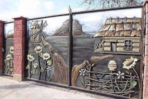 - Закрытые ворота изготовляют путем нанесения узора на сплошной металлический лист;