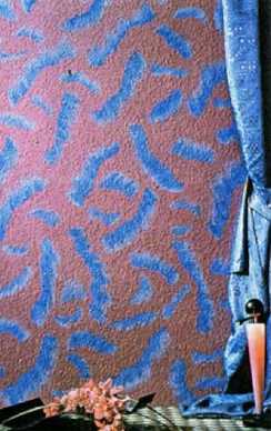 Изящные узоры на стене оставляет специальная губка. Для этого её слегка смачивают в краске и кратковременно прижимают к стене, получая на ней произвольно расположенные следы.