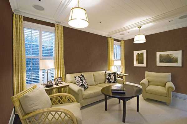 Частое желание людей – это спокойная и уютная комната для отдыха, которая может также быть стильной и экстравагантной. В этом может помочь простая манипуляция с обоями под покраску – создание контраста между двумя оттенками одного цвета (или разных цветов). Например, верхняя часть обоев окрашивается в лимонный, а нижняя – в кофейный. Такая простая уловка дизайнеров превратила миллион незаурядных спален в произведения искусства.