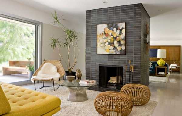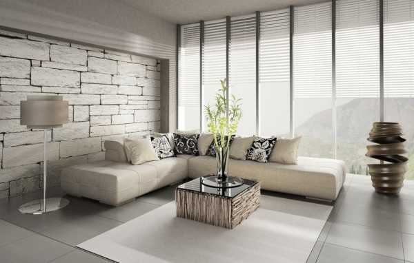 Этот отделочный материал популярен благодаря своей простоте использования. Для декорирования гостиной можно использовать один из вариантов плитки: