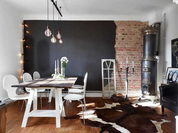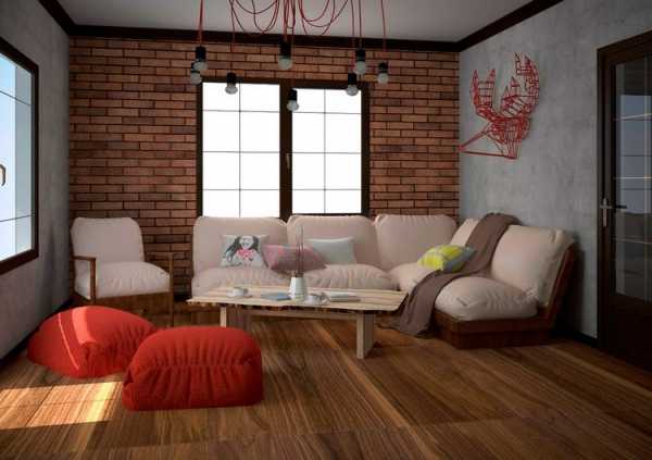 Этот вариант подходит для обладателей новенькой квартиры в новостройке с черновой отделкой или хозяевам коттеджа из кирпича. При оформлении комнаты большая часть стен оштукатуривается или обшивается гипсокартоном. Одна поверхность в помещении остается в своем первозданном виде. Совсем без внимания ее тоже оставлять нельзя, но все отделочные работы сведены к минимуму. Все проходит в несколько шагов: