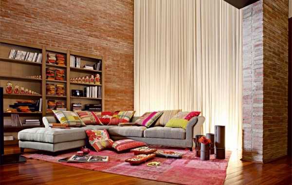 Кирпичная кладка в гостиной: 8 вариантов практической реализации