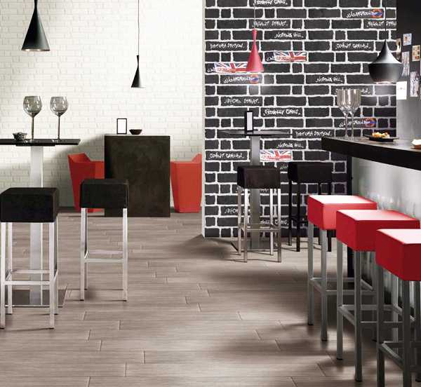 Хорошей альтернативой лицевому кирпичу служит керамическая плитка или керамогранит. Этот материал легко позволяет декорировать стены под кирпич в гостиной. Широкая палитра цветов и фактур плитки не уступает кирпичу по своим эстетическим качествам.