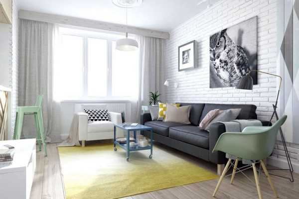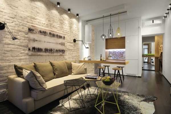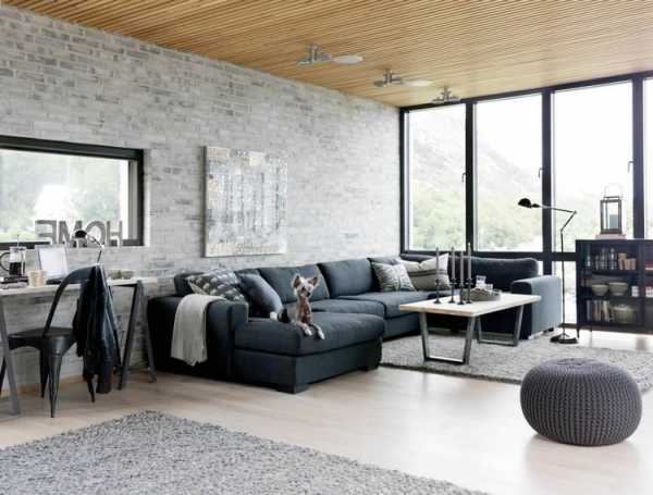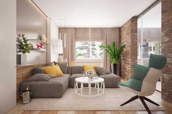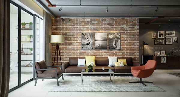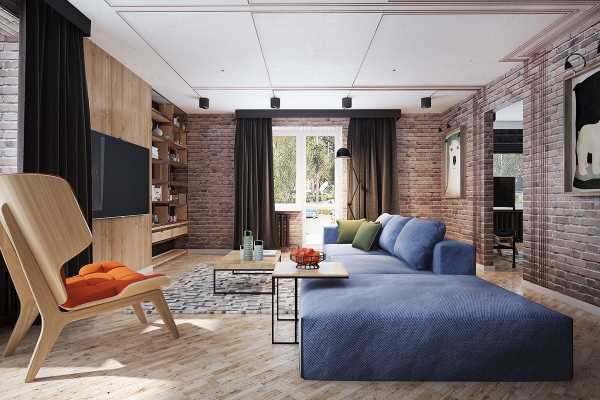 Интерьер современной гостиной с отделкой из искусственного кирпича