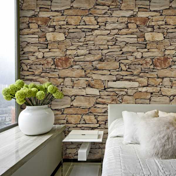 Обои лучше заменить декоративным, облицовочным кирпичом, он не уступает натуральному по фактуре и привлекательному внешнему виду, но не дает создать перегруженный отдельными элементами интерьер, поражающий своей легкостью и изысканными акцентами, для которого используются малые мебельные формы и аксессуары.