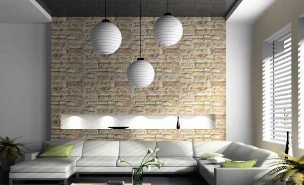 В современных оформлениях жилых комнат таких как гостиная используют не только грубый материал. Разрешается даже, чтобы стена не была ярким контрастом в комнате. Можно использовать только лишь фактуру, которая разнообразит вашу гостиную.