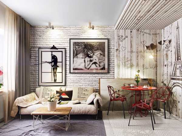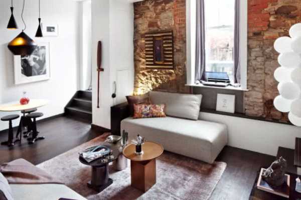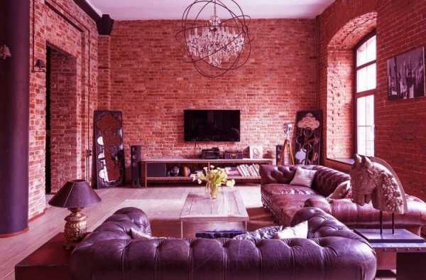 Эклектика и лофт помогают создать оригинальный интерьер помещения, при этом дизайн гостиной с кирпичной стеной будет выделяться нестандартным решением, для которого можно не оголять всю поверхность, а выделить определенную площадь и декорировать ее отдельную зону.