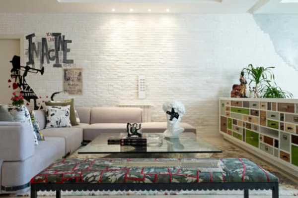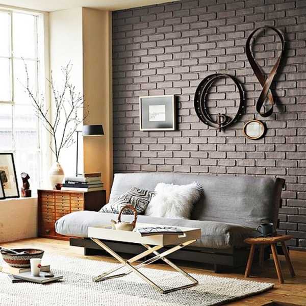 Считается, что кирпичная кладка способна гармонично вписаться практически в любой интерьер. Это утверждение является верным, но с некоторыми оговоркой. В нежных, «женских» интерьерах гостиных рекомендуется зашпаклевывать кирпичную поверхность таким образом, чтобы рельеф ее сглаживался, но не исчезал полностью. Оригинальный рисунок кладки сохраняется, становясь менее броским. Затем рекомендуется окрасить кирпичную поверхность в пастельный оттенок: пудровый, слоновая кость, светло-серый. Сглаживать брутальную эстетику кирпича стоит и в случае, если интерьер очень самобытен или эклектичен. Ведь кирпичная стена – дополнительный акцент, а в помещении оригинального дизайна ярких деталей хватает и без этого.