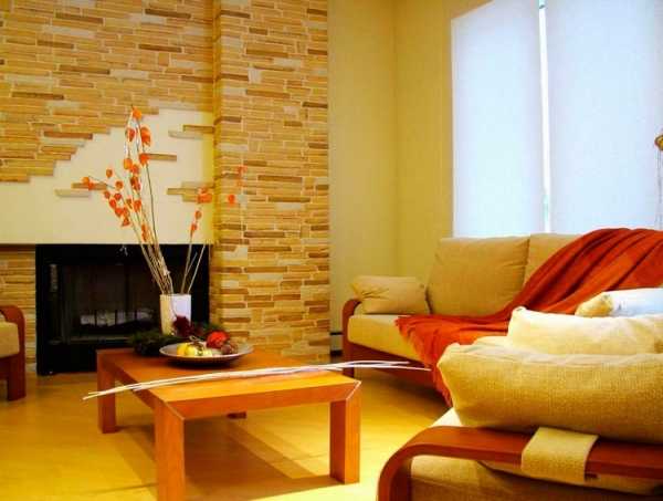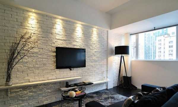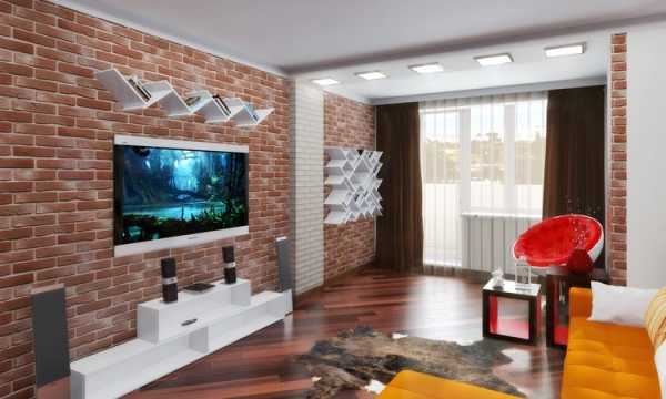Декорирование, отделка стен под кирпич в гостиной: фото