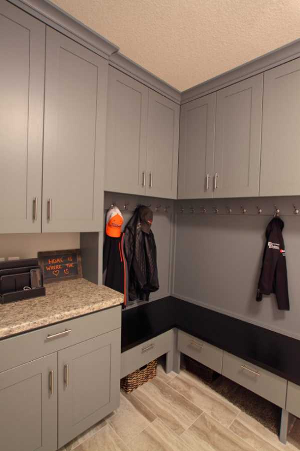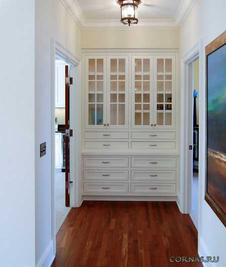 Когда и коридор и семья большого размера, можно сделать несколько секций. На фотографии внизу вы видите как это выглядит. (Работа неизвестных зарубежных мастеров)
