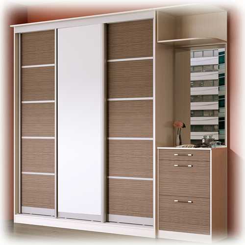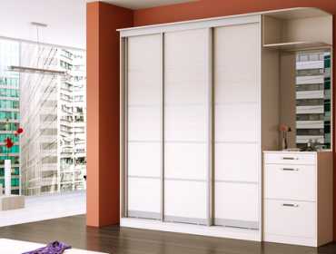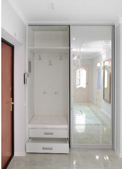 В прихожей необходим шкаф или вешалка для хранения одежды. Обычный шкаф неудобен из-за распашных дверей, которые блокируют проход, а вешалка с кучей одежды выглядит далеко не так эстетично как хотелось бы. Потому в последнее время все чаще ставят шкаф купе в прихожую. Данный вид мебели позволяет рационально использовать весь полезный объем — за счет полочек, корзин, вешалок и т.п.