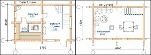 (⇓) Хороший пример двухэтажной компоновки русской бани.