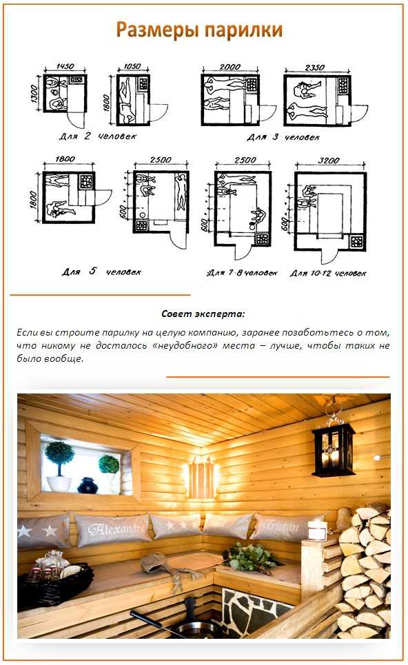 Размеры парилки на 4 человека, парная на 3, 2, 5 человек