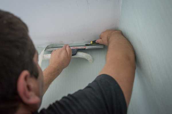 «Если потолок натяжной либо с плинтусом из пенополистирола, подрезку нужно делать максимально аккуратно и осторожно. Натяжной потолок достаточно задеть кончиком ножа, и образуется дырка».