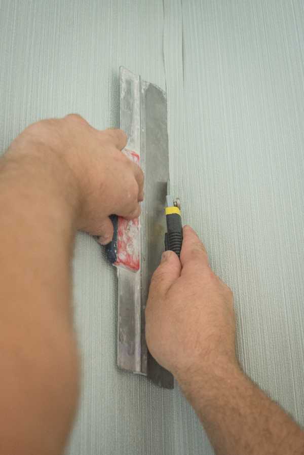 «Если в углу нужно приклеить узкую полосу обоев, то отрезать полотно нужной ширины можно так: обои требуемой длины скручиваются в трубку, кладутся на твердое место, отмеряется ширина и далее ножом, как хлеб, режется сразу весь рулон».