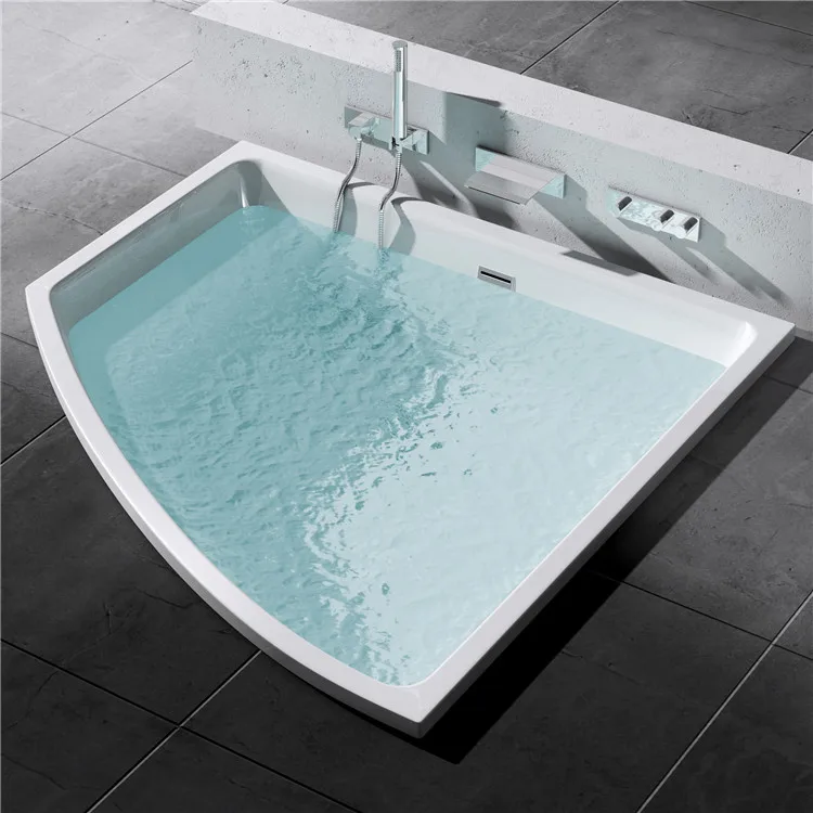 - Угловая модель имеет форму угла или капельки. Само название говорит о месте установки – между смежными сторонами комнаты. Стороны чаши могут быть одинаковыми или отличаться по длине. Для изготовления купели используется акрил или сталь. Данные материалы легче поддаются обработке. Некоторые производители оснащают свои изделия дополнительными приспособлениями в виде полочек для хранения средств гигиены или подголовников.
