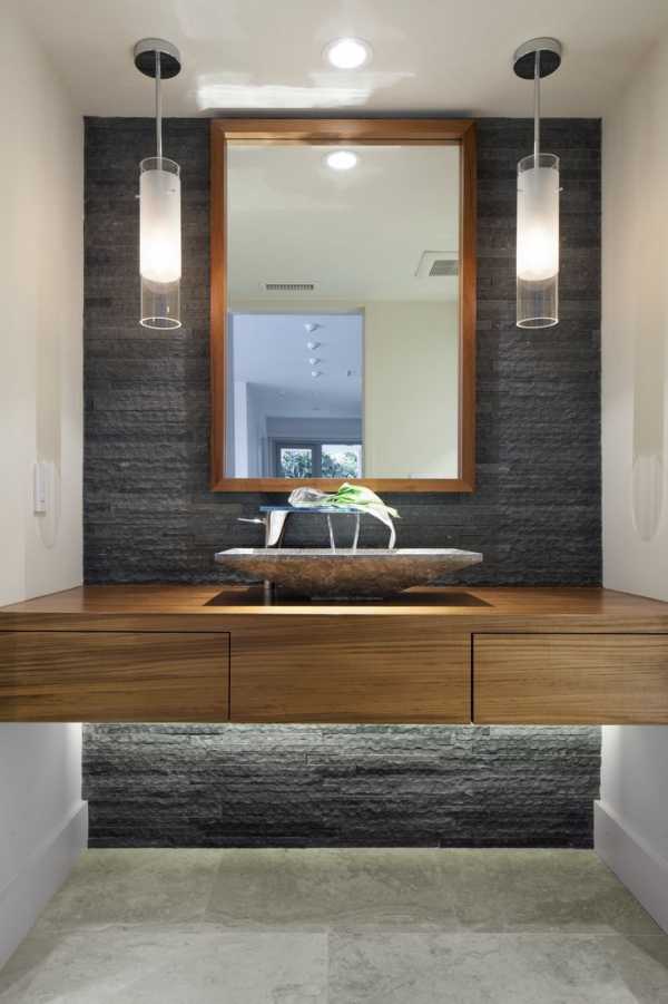 Довольно востребованными в последние годы в оформлении стали огромные зеркала размером от потолка и до пола, поскольку они имеют свойство визуально расширять помещение, добавляя простора. Еще одной особенностью современного использования зеркал в интерьере ванной считается зеркало со встроенной подсветкой, при том, что характерно для такого элемента интерьера: у подсветки имеется несколько уровней регулировки яркости света, что в свою очередь создает невероятно краси