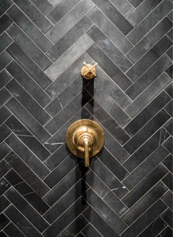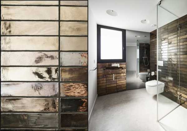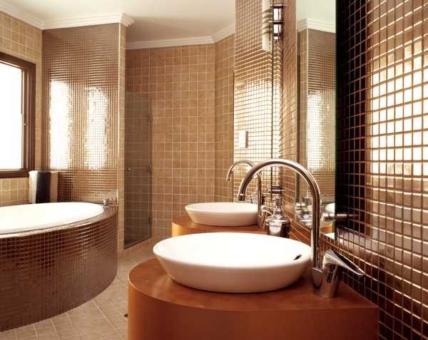 Добавить роскоши поможет золотистая современная плитка в ванную комнату