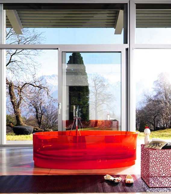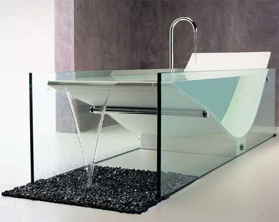 Емкость для принятия ванн со стеклянными стенками подчеркнет лаконичность хай-тека или минимализма