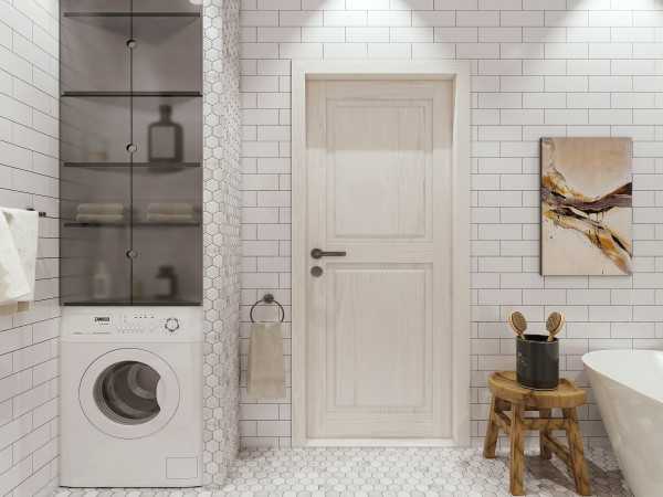 Бытовую технику не придется прятать, как в классическом варианте ванной, в стиле модерн она отлично смотрится на виду.
