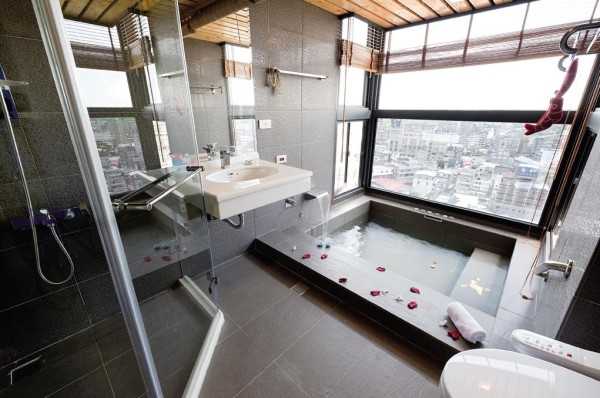 Еще один вариант для роскошной и неординарной комнаты – круглая купель в темном тоне