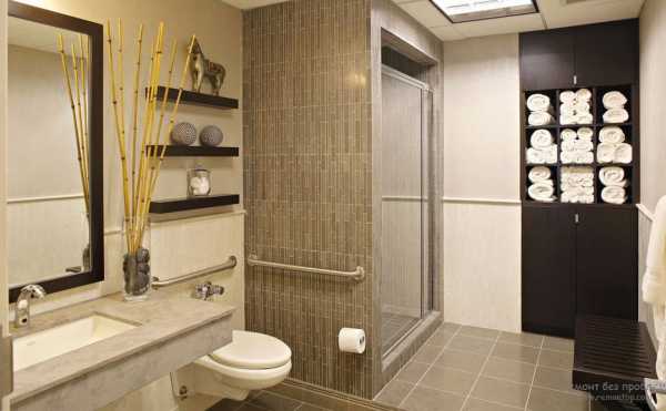 Идеи дизайна маленькой ванной комнаты с душевой кабиной смотрите в этой статье.