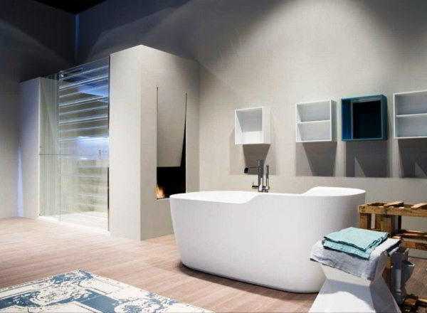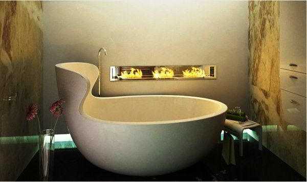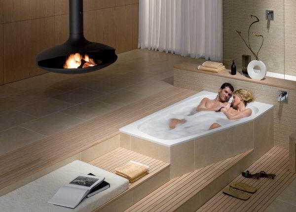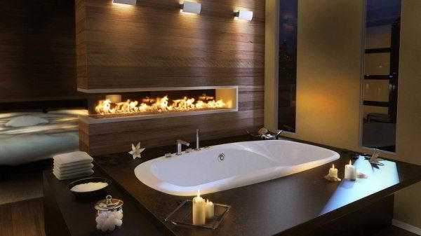 Современные реалии позволяют объединить пламя и воду и таким образом, получить эксклюзивную обстановку ванной комнаты.Сегодня камин считается наиболее оригинальным элементом ультрамодного декора, символом домашнего очага. Он может без труда вписаться в обстановку любого помещения, в том числе и ванной комнаты.