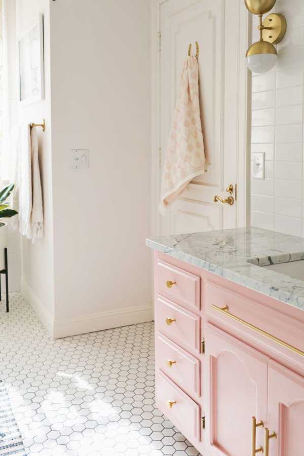 Чтобы смягчить дизайн минималистской ванной, добавьте мягкие пастельные тона, и результат будет приятно радовать вас и восхищать ваших гостей.